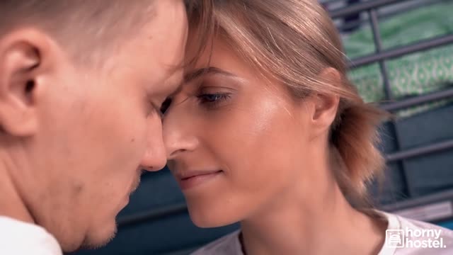 Adventurous blonde girl in hostel sex